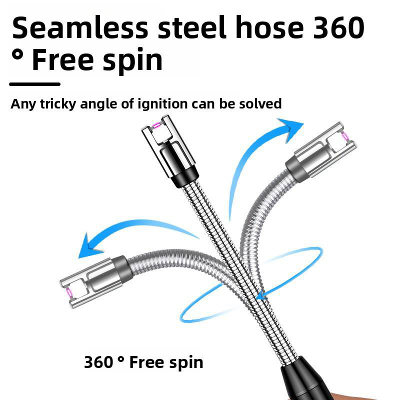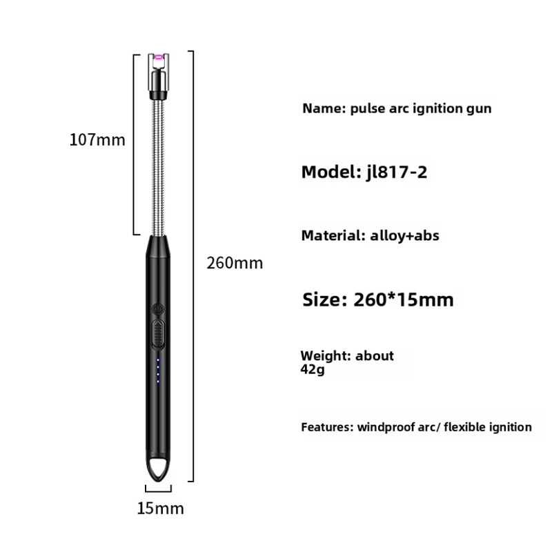 This new type of household igniter adopts pulse arc technology, bidding farewell to traditional open flames and fuel consumption. It can ignite quickly with just one click, is windproof and durable, and is suitable for use in multiple scenarios such as gas stoves, candles, and barbecues. The extended handle is paired with a flexible hose design, allowing for easy operation without the need for close proximity, effectively avoiding high temperature burns and providing a more secure use experience. The body is made of environmentally friendly and durable materials, providing comfortable grip and a compact size for easy storage, meeting the daily ignition needs of modern families.